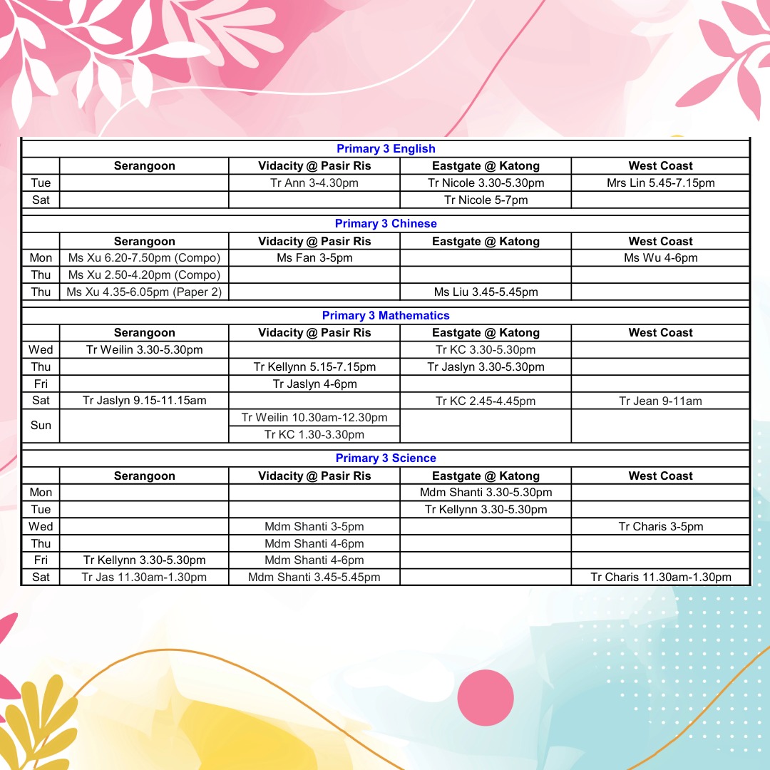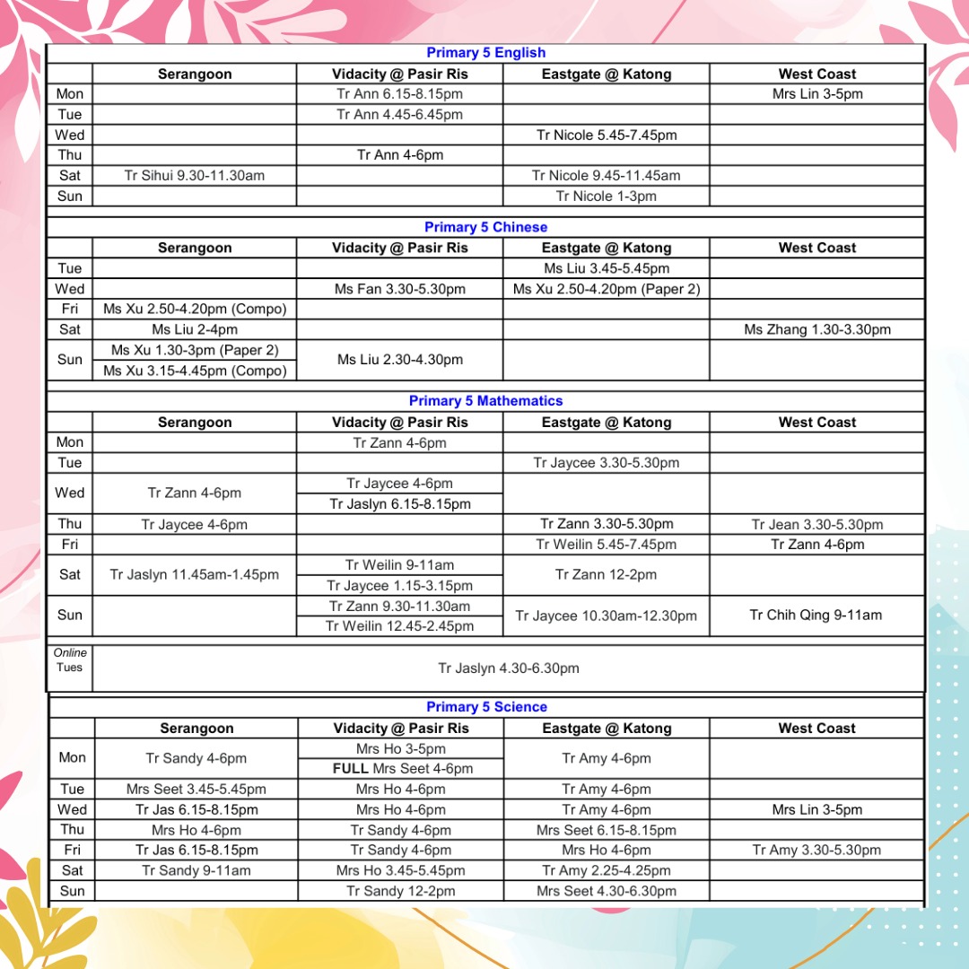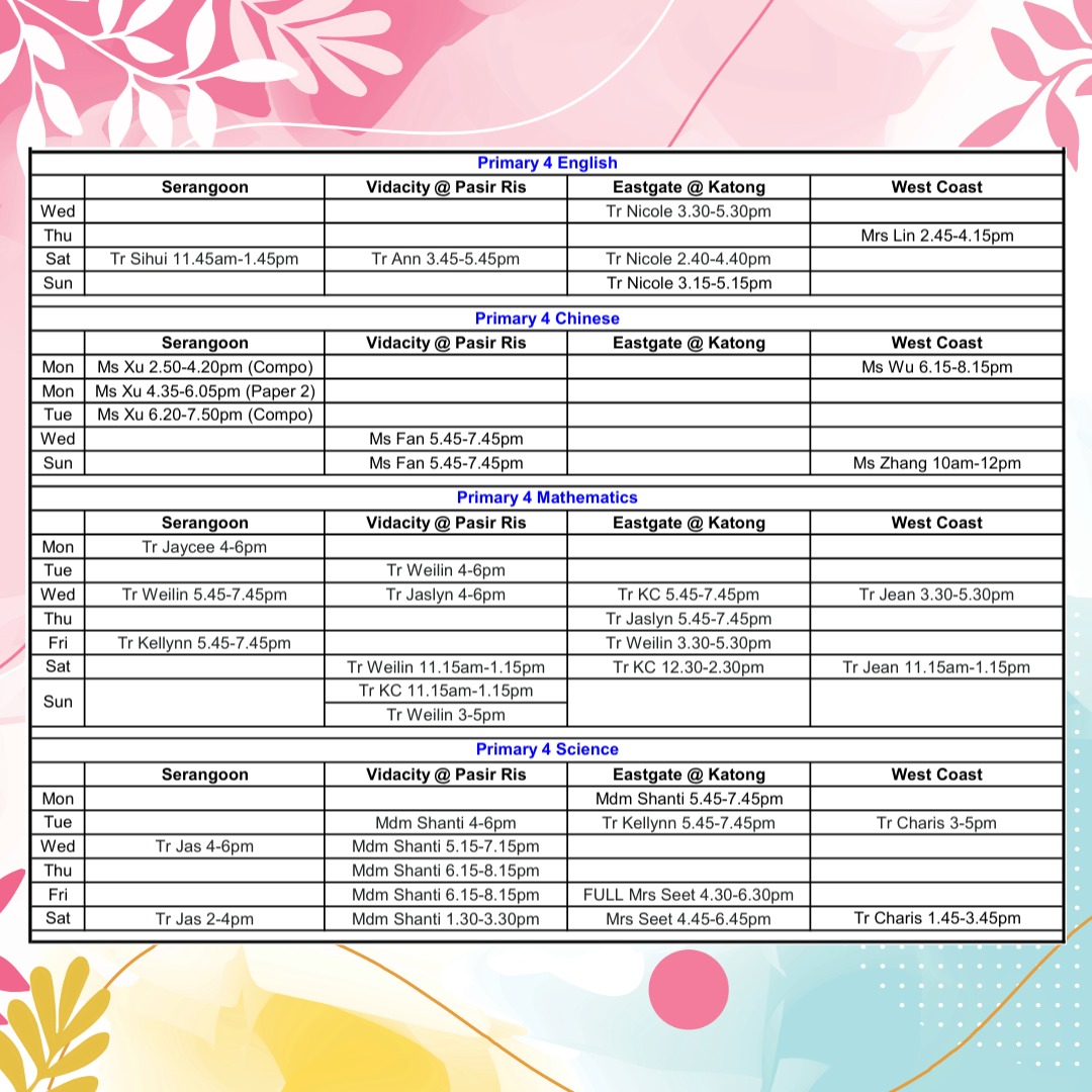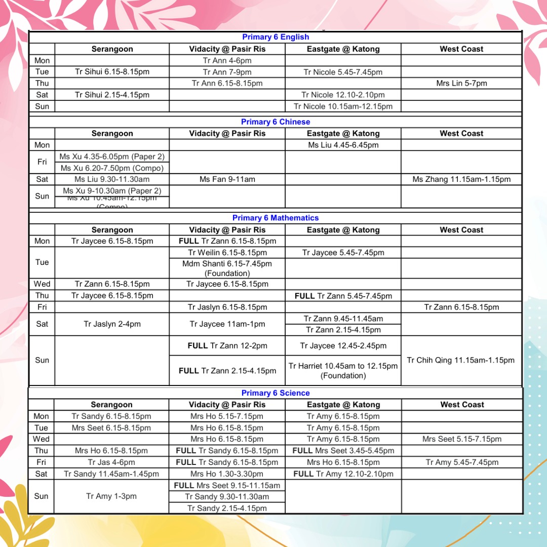 Primary 1-5: https://tinyurl.com/2026P1-P5Primary 6: https://tinyurl.com/2026Pri6Secondary 1-4: https://tinyurl.com/2026Sec1-Sec4Call us for more information.