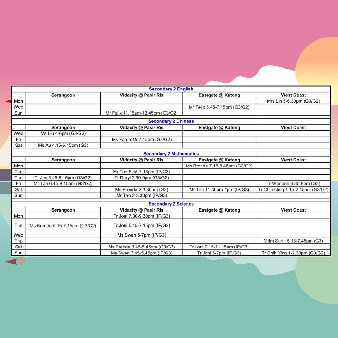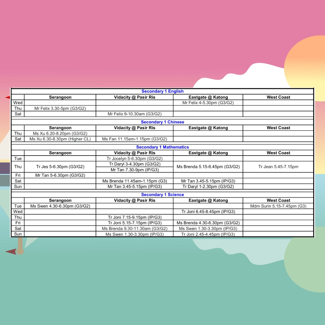 Primary 1-6: https://tinyurl.com/2026P1-P6TrialPromoSecondary 1-4: https://tinyurl.com/2026Sec1-Sec4TrialPromoTo register for 2026 courses,